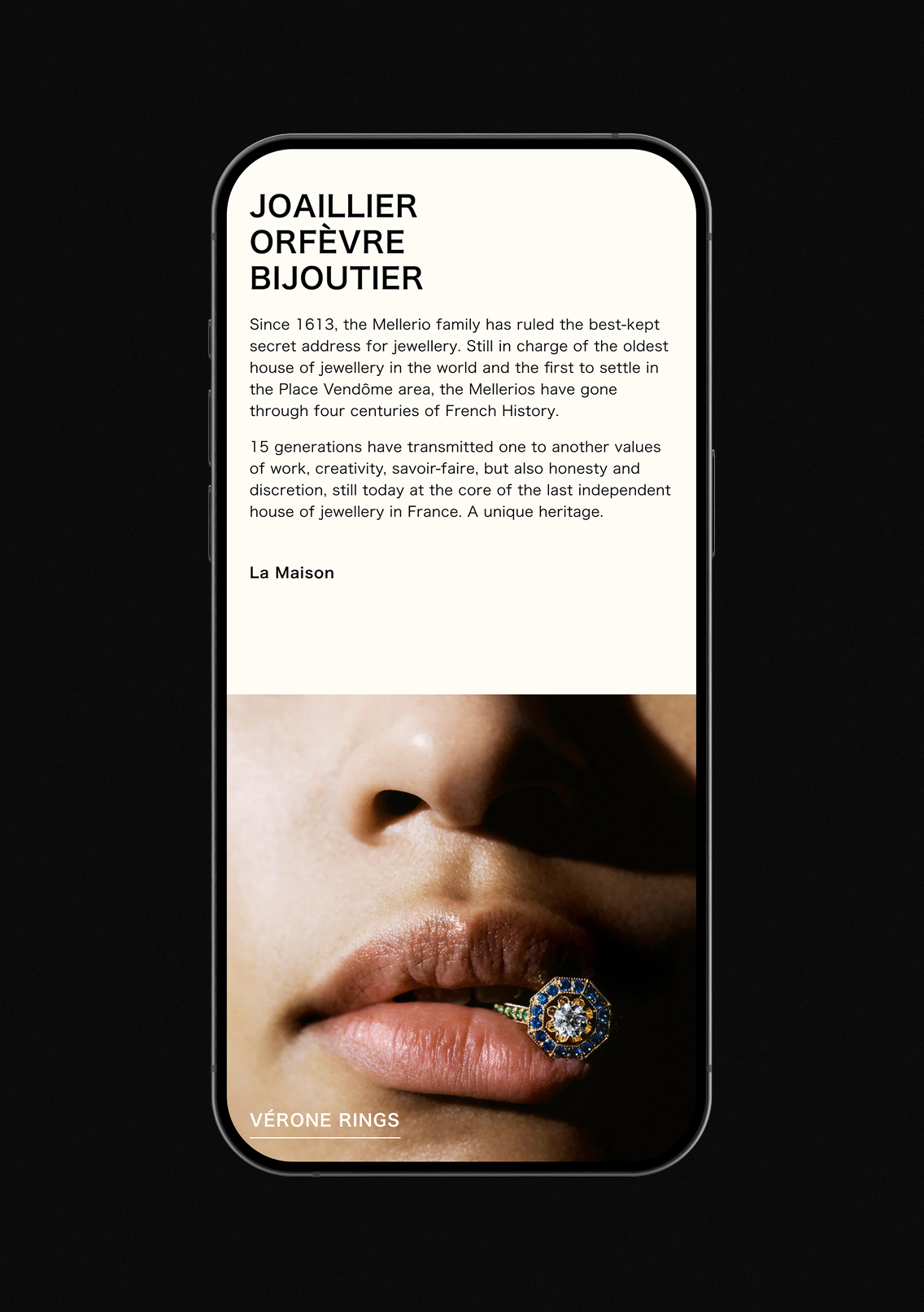Direction artistique et web design du nouveau site Mellerio, maison historique de haute joaillerie. Une identité digitale épurée, conçue pour valoriser l’héritage et le savoir-faire de la Maison.